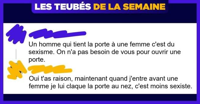 Nouvelle semaine, et plein de nouveaux teubés ont fait leur apparition comme par magie. Attention, si tu figures dans ce top, ne t’inquiète pas, respire profondément, fais un peu de pompes, et assume ton Q.I. très faible (un test de Q.I. est dispo pour toi). 1. Ils ont peur seulement pour ce qu'ils veulent « […]